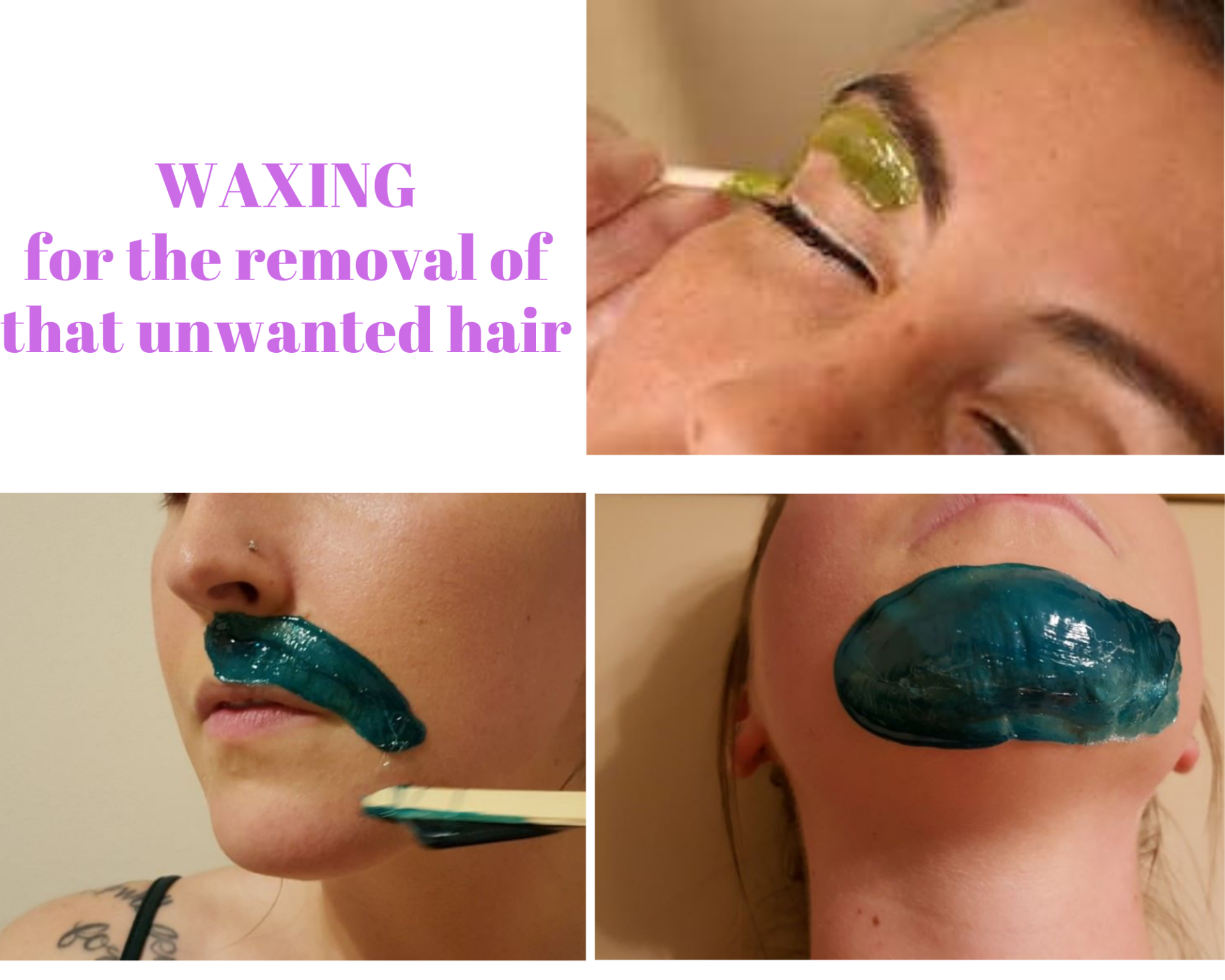 Treatment for the removal of unwanted hair! If you’ve always wanted a silky, smooth, hair-free feeling that lasts, then waxing is the solution you are looking for. Unlike shaving or depilatory creams, waxing removes the hair from the roots, so it lasts longer.